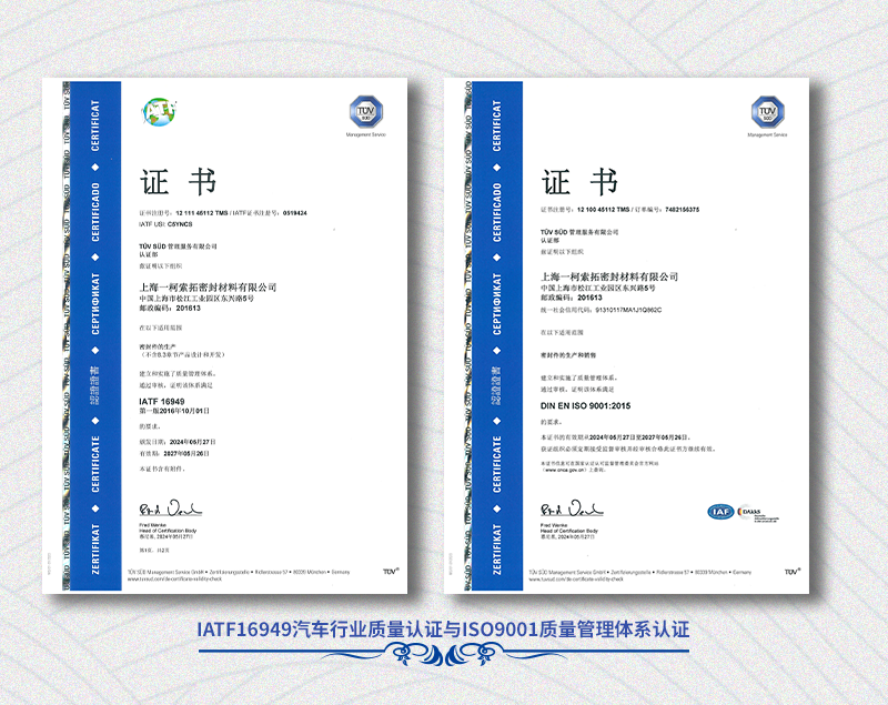 SealTex has been committed to the production and sales of 100% asbestos-free environmental sealing gaskets and high-temp thermal insulation products, participate in a number of National Standards establishment, engineering support to the customers such as FUJI test and FEA,. SealTex has passed ISO9001, IATF16949, ISO14001, ISO45001 and obtained local GC special equipment manufacturing licence.