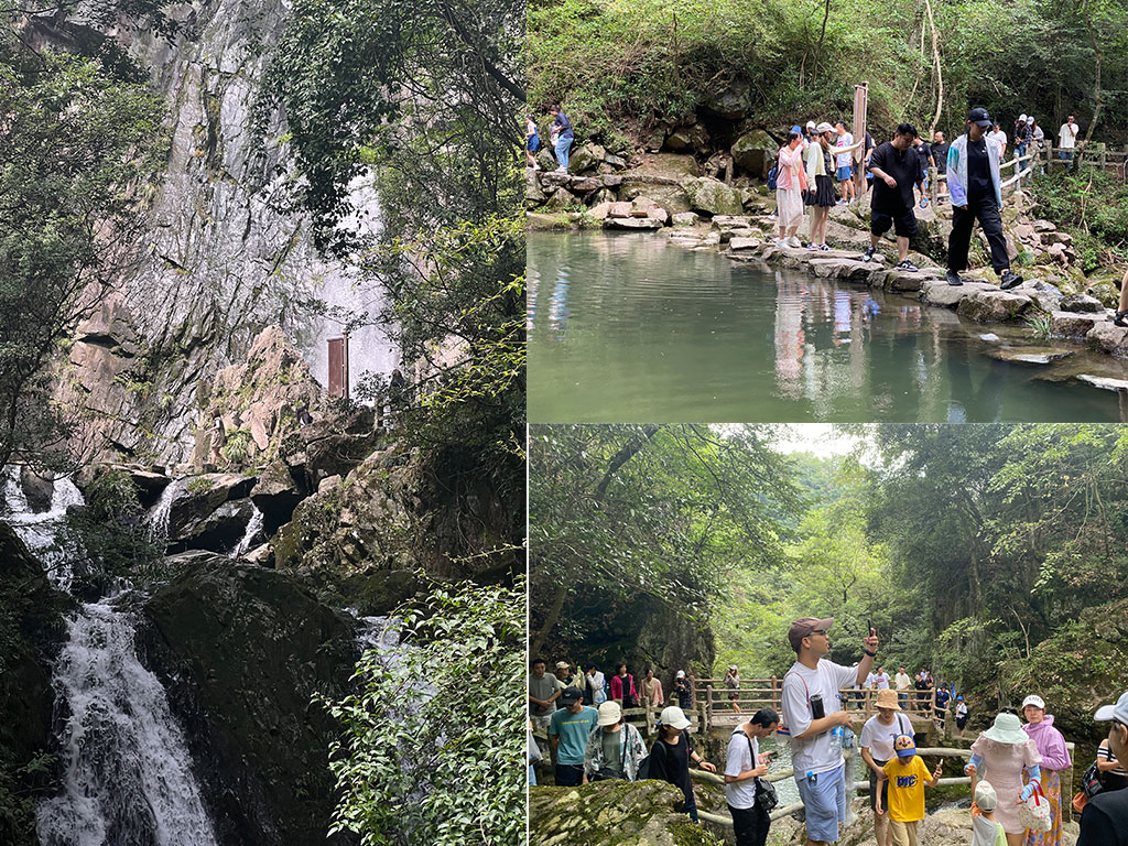 集體徒步觀光小而美的嵊州百丈瀑布在越劇小鎮(zhèn)
