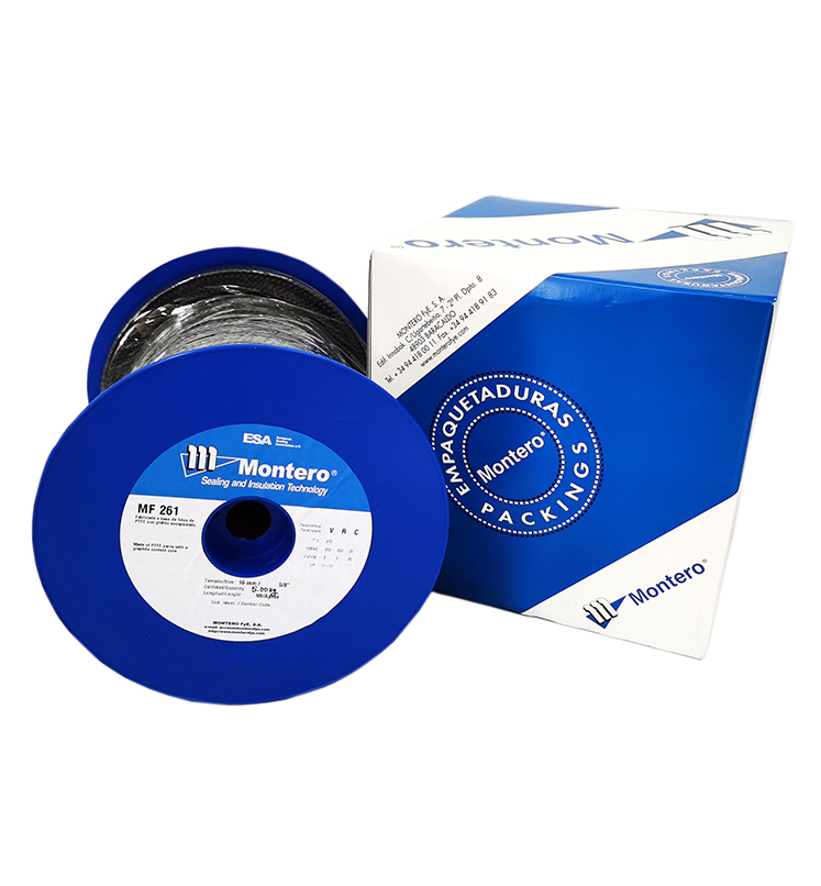 MF-261由含石墨的四氟線經(jīng)對(duì)角編織而成。石墨成份使盤根非常柔韌、易安裝及散熱快﹔四氟成份使其極抗化學(xué)腐蝕﹐幾乎適用于除強(qiáng)氧化物質(zhì)(如硝酸、硝基鹽酸及強(qiáng)堿)之外的任何介質(zhì)。此盤根不易硬化,且具有自潤滑性能﹐使其被廣泛應(yīng)用于各種旋轉(zhuǎn)設(shè)備的填料函及閥門。