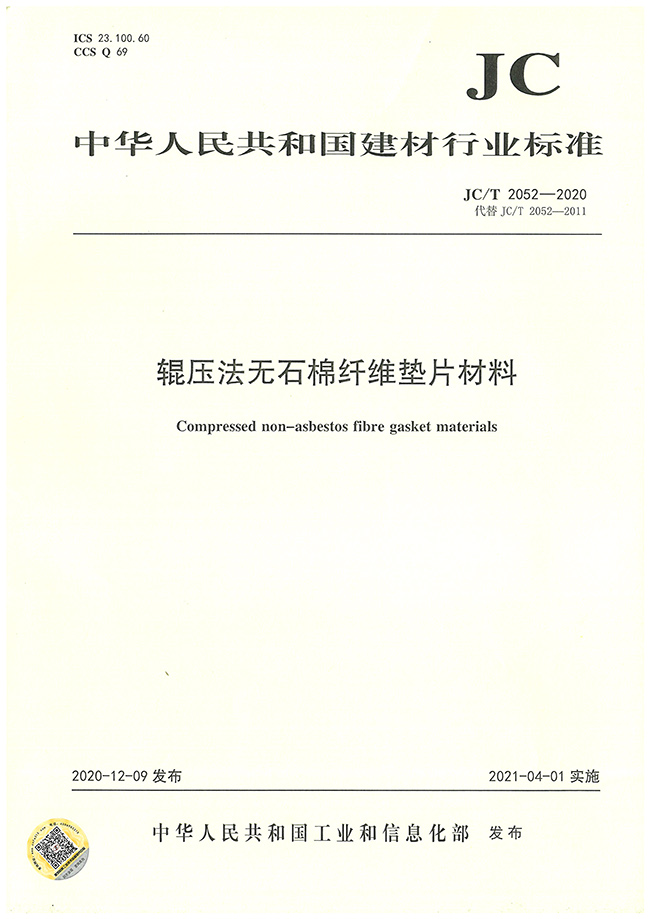 我司參與起草JC/T2052《輥壓法無石棉纖維墊片材料》標(biāo)準(zhǔn) 上海索拓密封材料有限公司(以下簡稱“我司”)參與起草了JC/T 2052-2020《輥壓法無石棉纖維墊片材料》標(biāo)準(zhǔn) 是JC/T 2052-2020《輥壓法無石棉纖維墊片材料》標(biāo)準(zhǔn)的第三起草單位。 上一個 返回列表 下一個