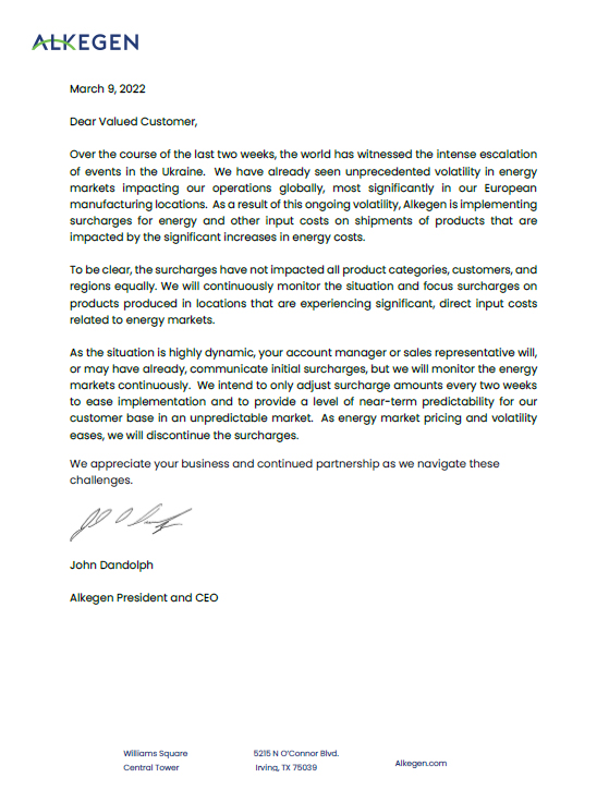 關(guān)于美國InterFace材料能源費上調(diào)7.1% 的緊急通知