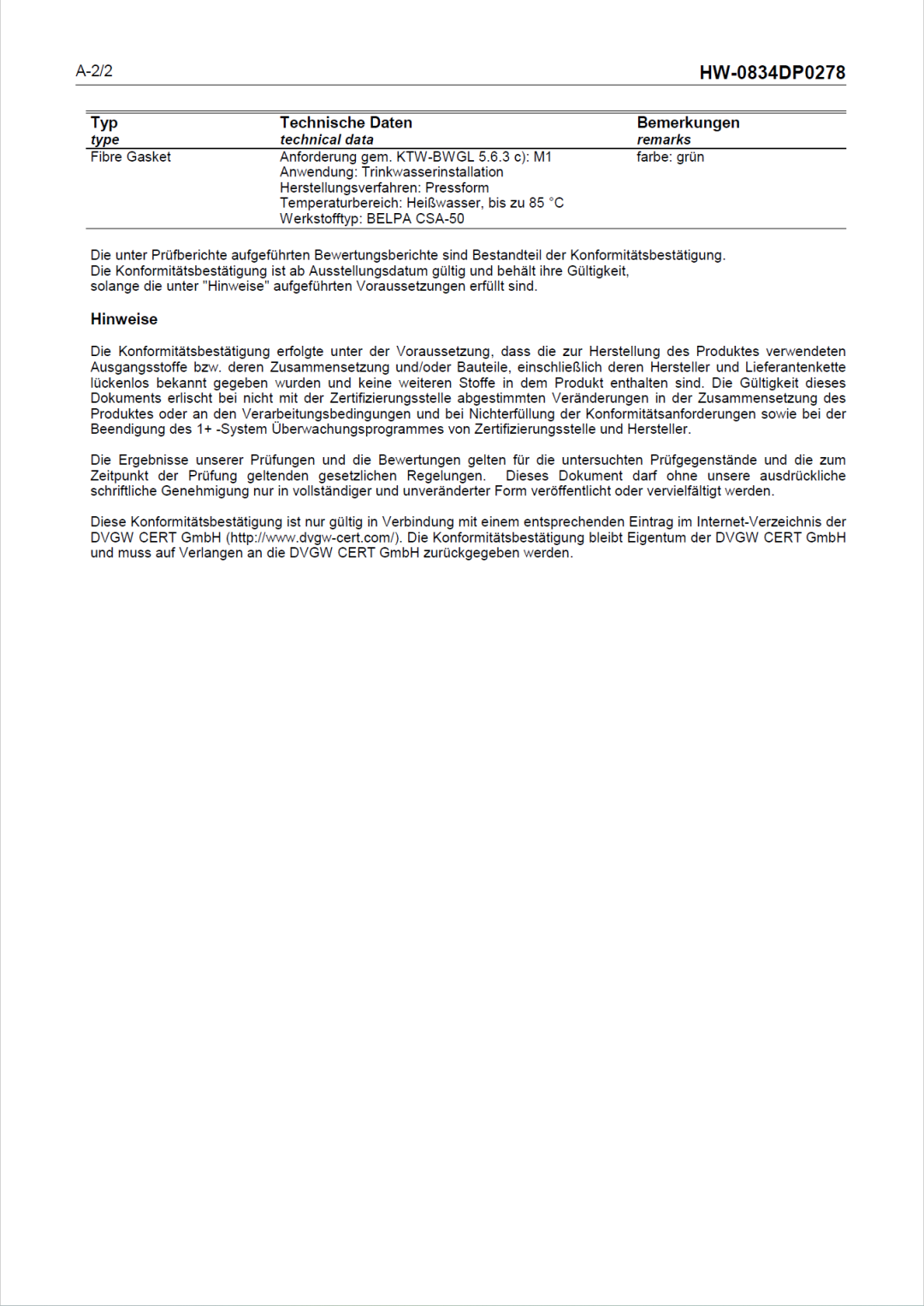 目前,我司合作伙伴西班牙標牌BELPA CSA-50無石棉板已獲得KTW-BWGL認證。